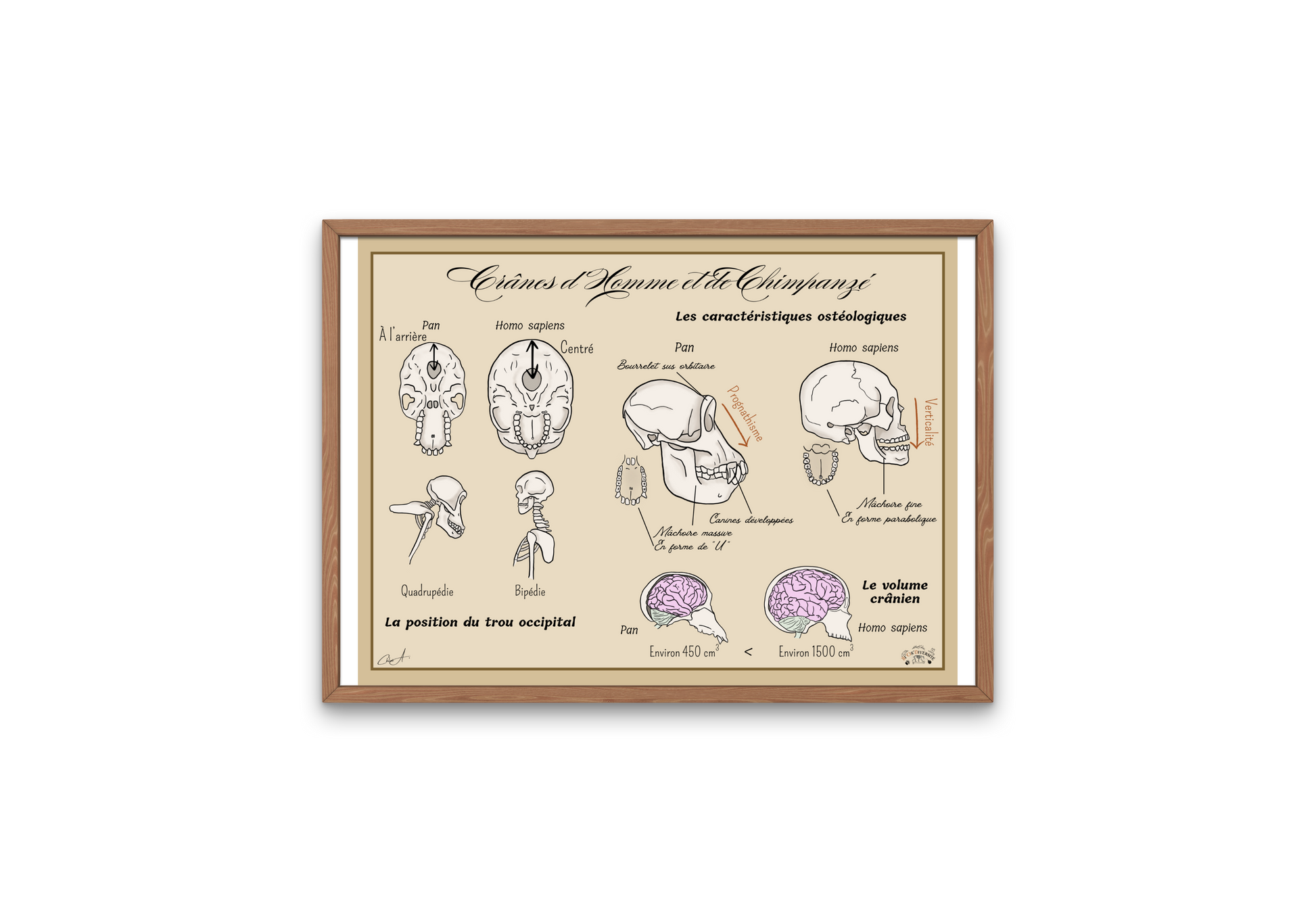 Poster Lignée humaine – Crânes Homme vs Chimpanzé